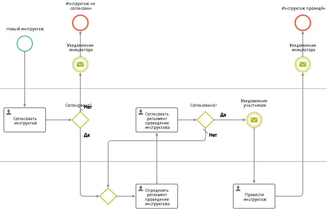 - переходы между этапами происходят автоматически — по событиям и условиям;
