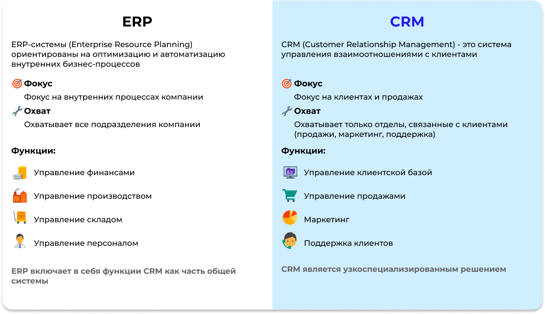 CRM, финансы, производство, HR, проекты, учёт |