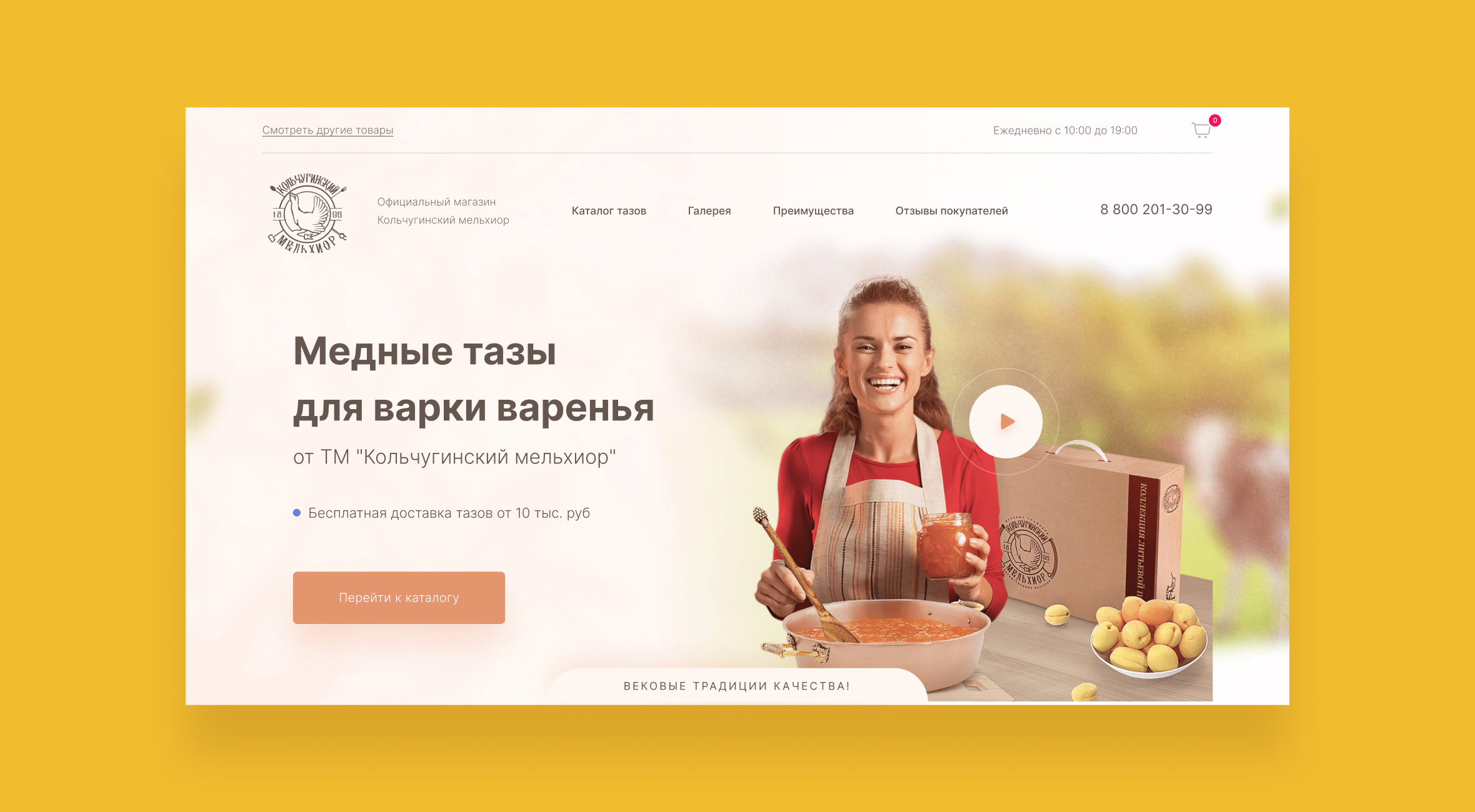 Третьей страницей, которую разработала наша команда в рамках доработок, стал информационный лендинг «Тазы». На нем представлен видеоролик, каталог продукции, галерея фотографий с расписанными преимуществами и отзывы покупателей.