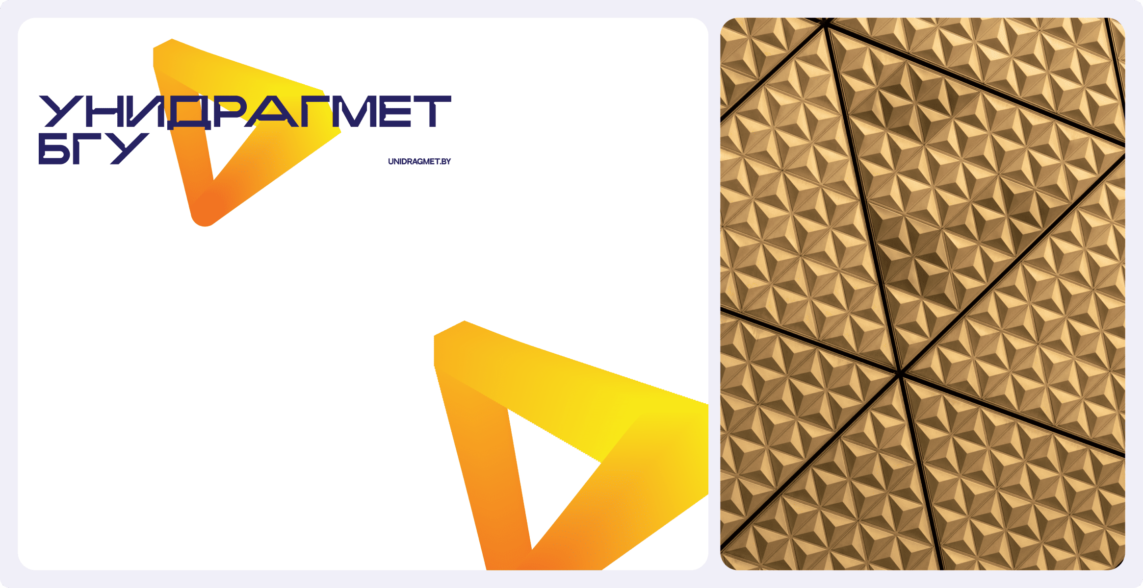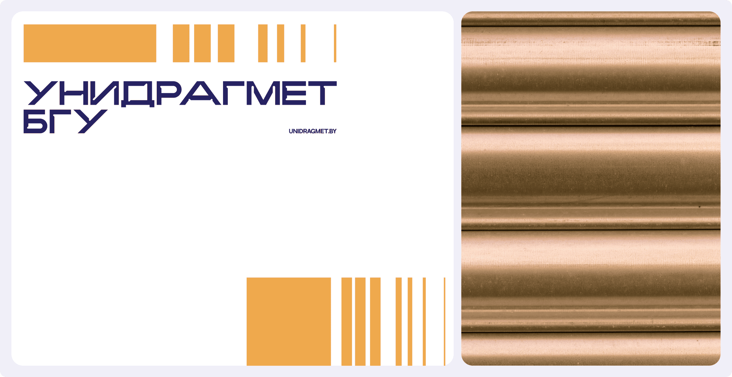 - Синие оттенки добавляют глубины, контраста и подчёркивают связь предприятия с Белорусским государственным университетом, частью структуры которого является Унидрагмет