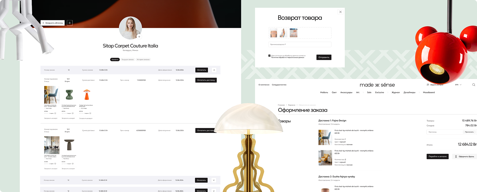 Проектируем UX и интерфейсФормируем логику взаимодействия между пользователями: покупателями, продавцами, администраторами. Проектируем удобную навигацию, личные кабинеты, роли, статусы заказов и поведения в системе